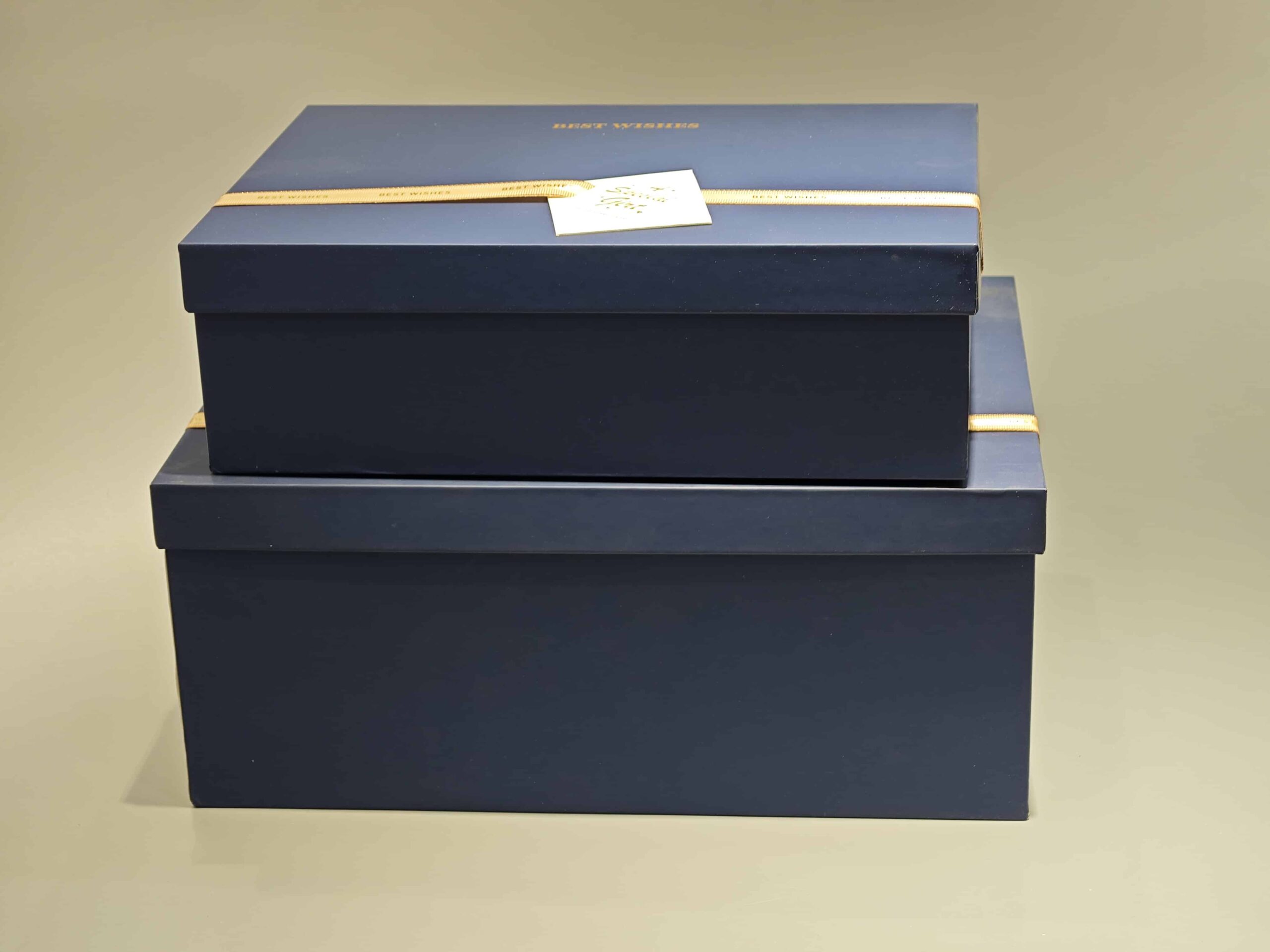 The Blue Luxury lift-off lid gift box is a two-piece packaging solution designed for the gift and retail industries. Its lift-off lid design ensures easy access to contents, while the elegant ribbon detail enhances the overall presentation. The box features customizable foil stamping, allowing for personalized branding options.