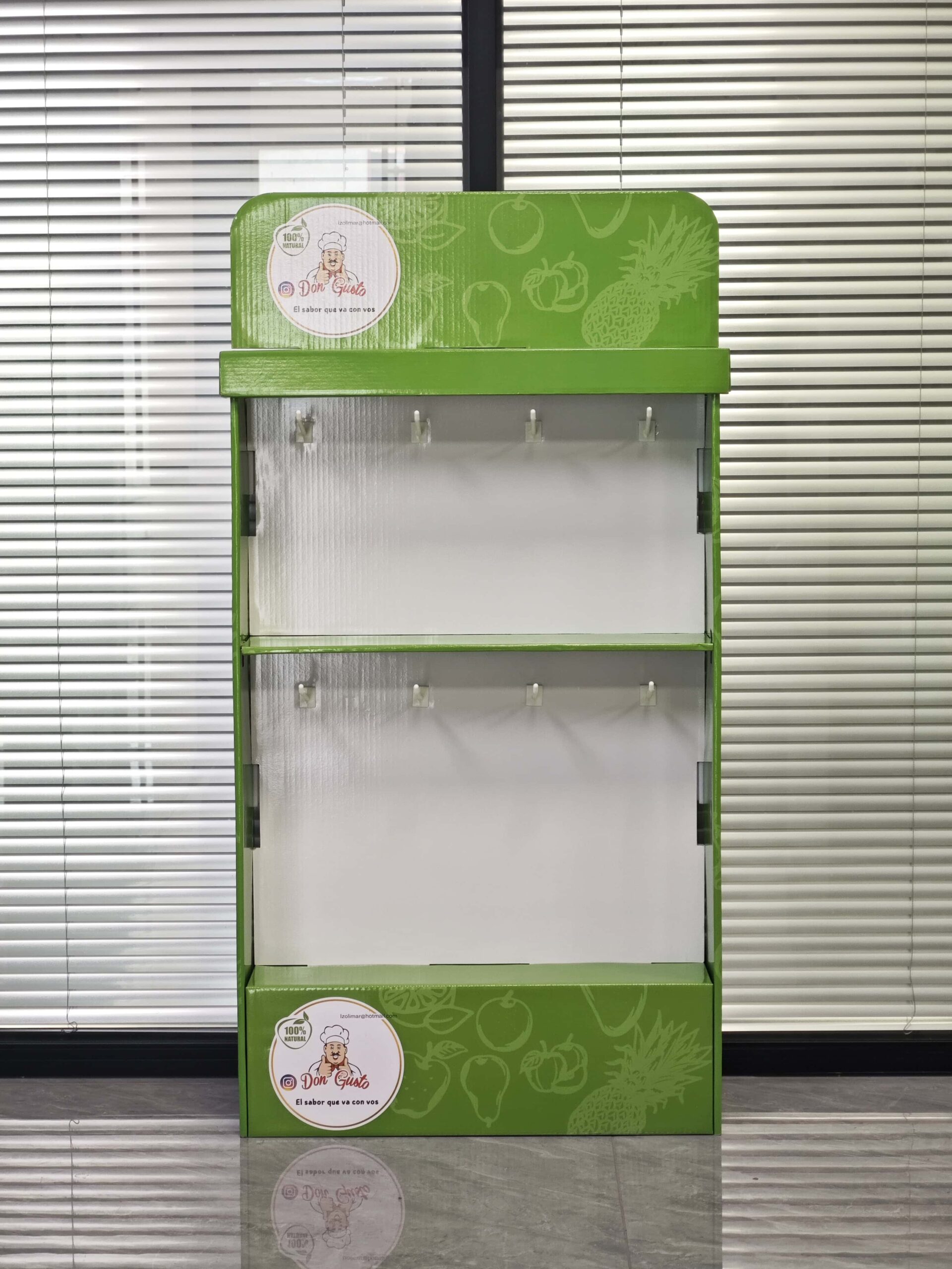 The Custom Green 2-layer Tray Floor Display is a Point of Purchase (POP) solution featuring two levels of product presentation space. Designed for shopping mall showcases, this floor display enables organized and visually appealing merchandise arrangements in high-traffic retail environments.