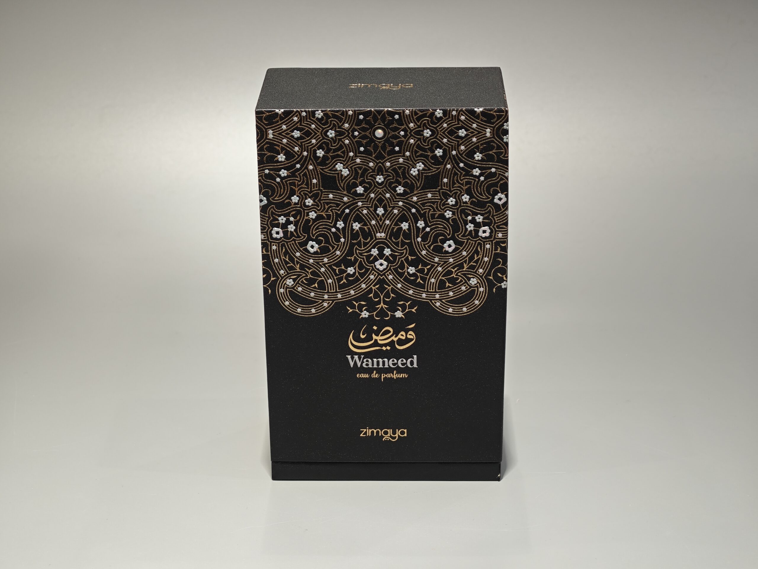 The black foil stamping technique applied to the box surface creates a refined appearance, complementing luxury perfume products.