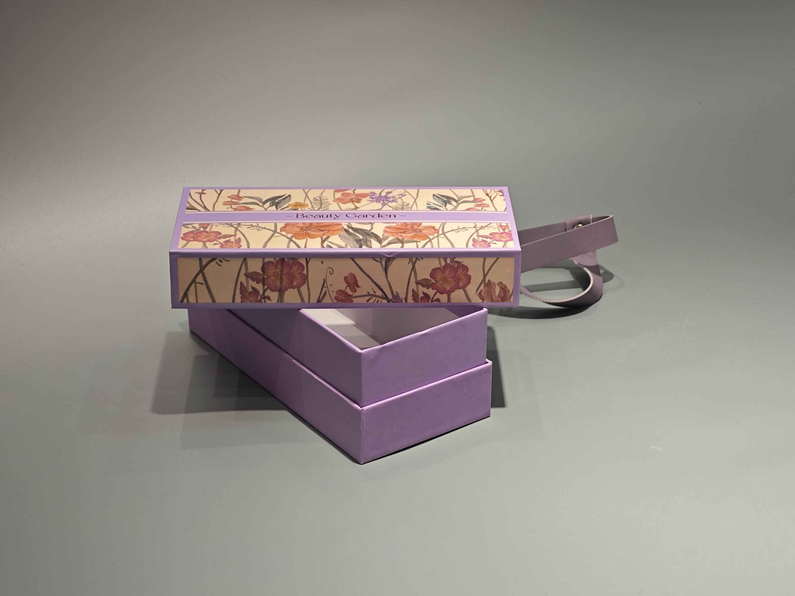 The Purple luxury shoulder neck gift box is a packaging solution for the cosmetic industry. Its purple color and luxurious design make it suitable for presenting high-end beauty products or creating gift sets. The shoulder neck style adds a distinctive touch to the packaging, enhancing the overall presentation.