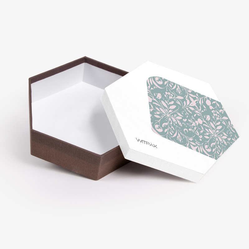 Custom Hexagonal Rigid Box with Decorative Lid Pattern
