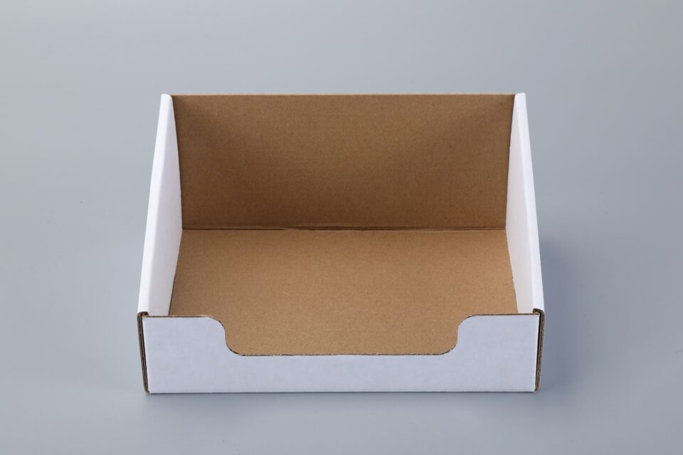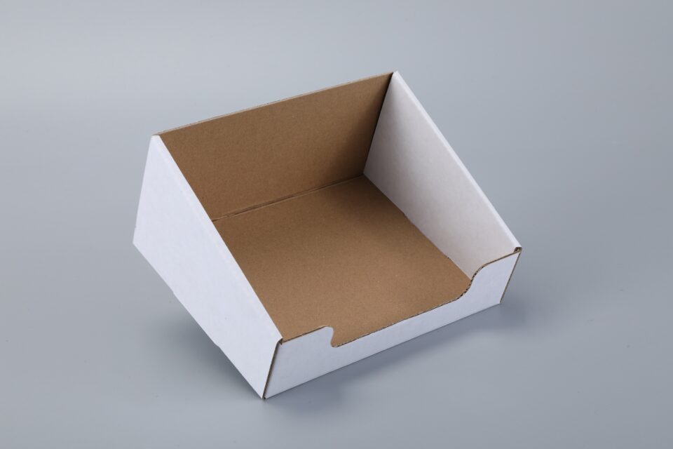 The box is a unique trapezoidal corrugated display box that stands out from the crowd. Its eye-catching shape and sturdy construction make it perfect for showcasing products in retail environments or at trade shows.