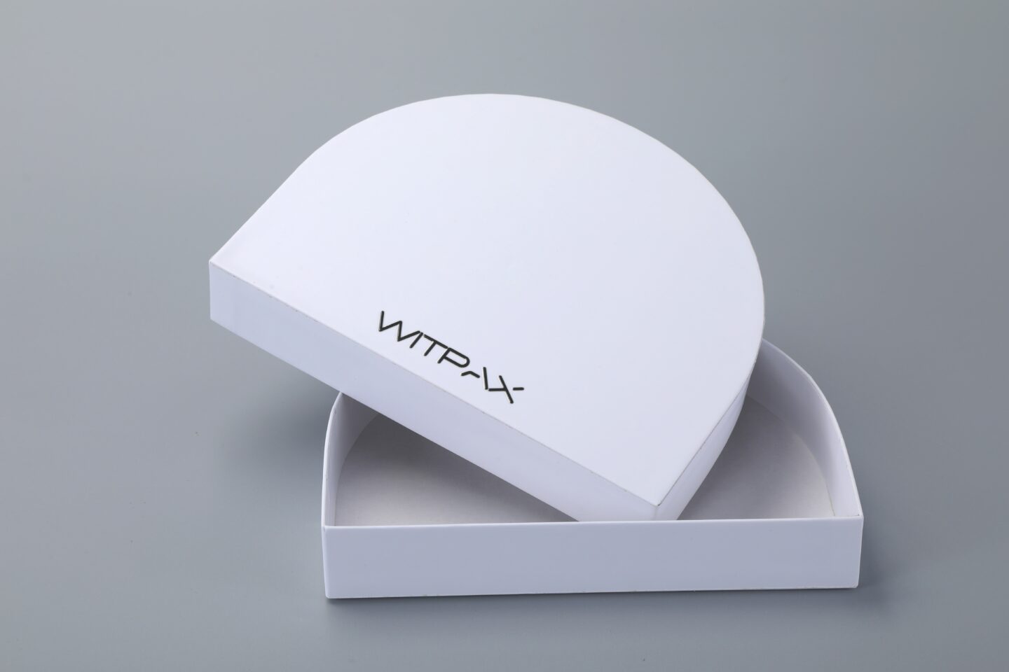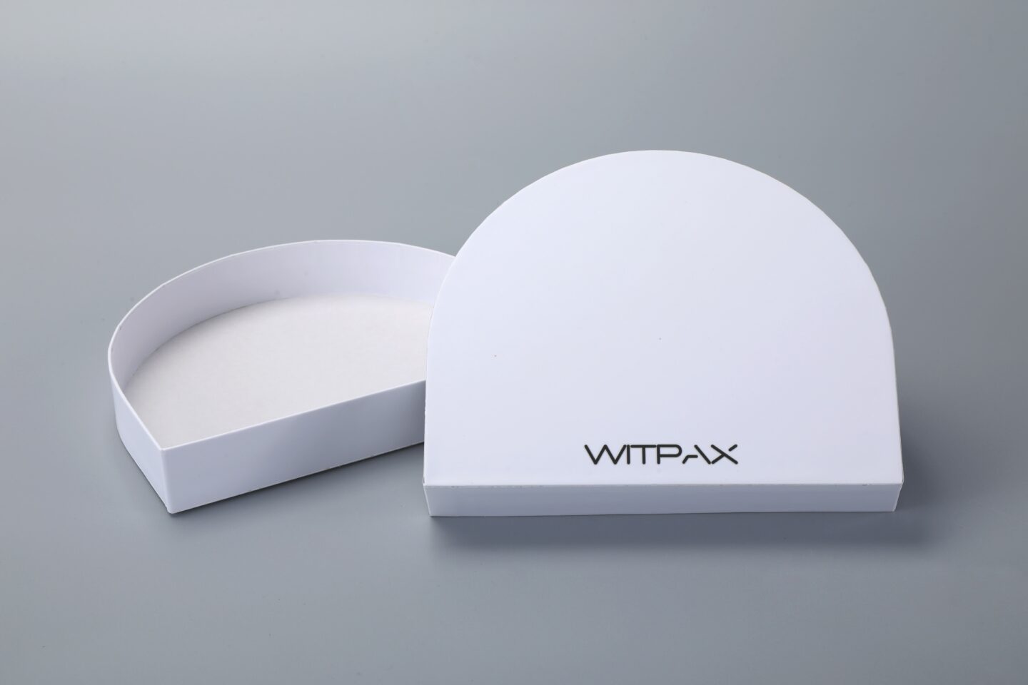 The WITPAX Half-Moon Lift-Off Box is a stylish and practical packaging solution. It features a unique half-circle lid that lifts off easily. This box combines looks and function for a great unboxing experience.