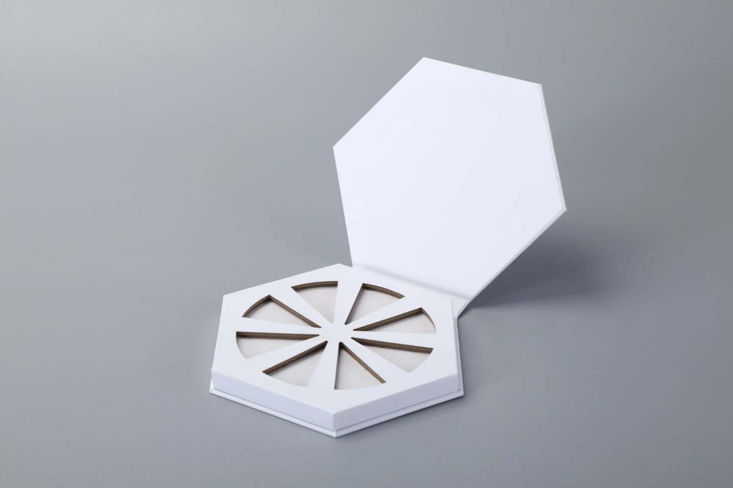 The Rigid Box is a unique, eye-catching packaging solution. It combines the strength of rigid boxes with a stylish hexagon shape. The book-style opening adds a touch of elegance and practicality.