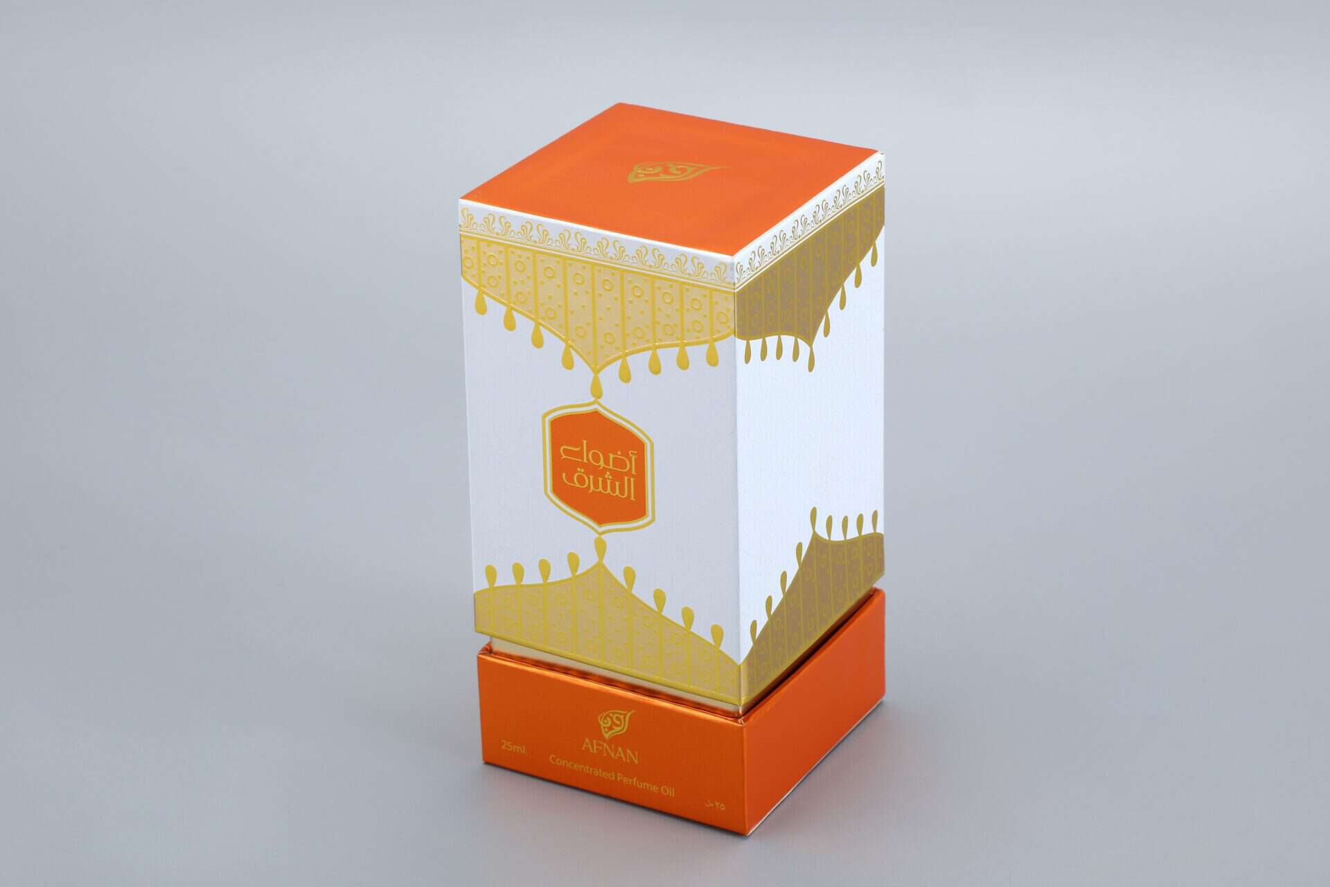 This orange handmade perfume box showcases UV printing, embossing, and varnishing techniques, creating a luxurious packaging solution for the fragrance…