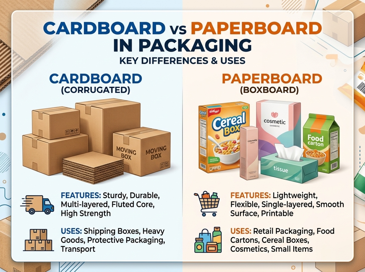 This article compares paperboard vs cardboard at the material level, explaining how their structure, performance, and physical characteristics influence packaging decisions and real-world use.
